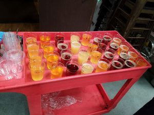 We wound up choosing samples from 8 barrels to try, and split into 4 groups to come up with our favorite blends, then the favorites from the groups were voted on by everyone to choose the final choice. The official selection was a blend (mostly concocted by Chef Ian) from 4 different barrels and will also have cherries added… it should be delicious! The beer will likely be available in a few months – We will keep you posted! Thanks again to Alex for giving the club this opportunity!